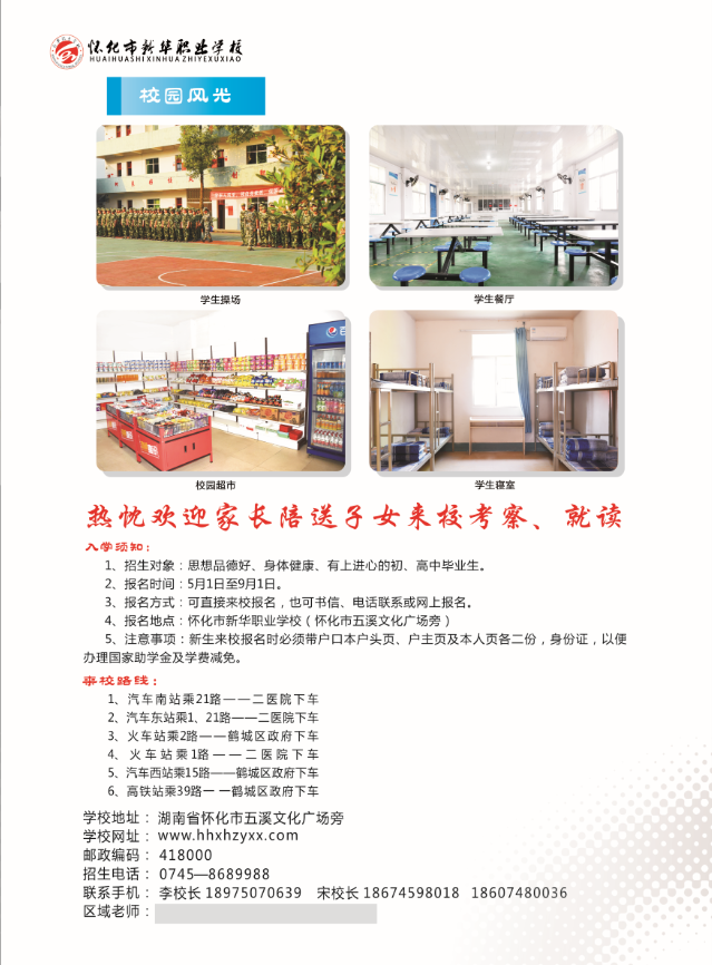 聯(lián)系人:宋校長(zhǎng) 聯(lián)系號(hào)碼:18607480036 聯(lián)系人:宋校長(zhǎng) 聯(lián)系電話:13174200002 學(xué)校地址:懷化市鶴城區(qū)坨院路口中鐵五局六公司